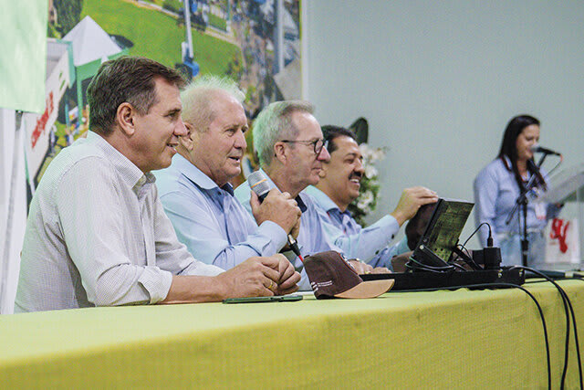 Importância do jovem no campo fez parte da fala da mesa de abertura com o presidente da Expodireto Cotrijal, Nei Manica; o vice-presidente da Cotrijal, Enio Schroeder e do gerente de Marketing da Cotrijal, Benisio RodriguesO produtor rural e influenciador Murilo Groth, junto com o pai, compartilhou suas vivências