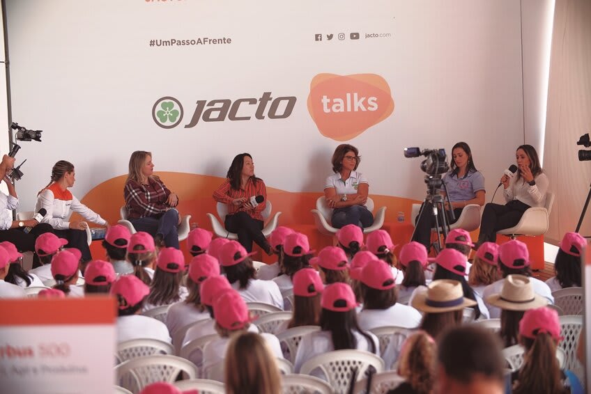 Em alusão ao Dia Internacional da Mulher, comemorado no dia 08 de março, a Jacto realizou uma ação durante a feira, convidando mulheres que atuam no agronegócio para uma conversa no Jacto Talks. O tema central do bate-papo foi a importância das mulheres dentro e fora da porteira. Entre outros assuntos, destacam-se a sororidade, a importância da parceria entre homens e mulheres e as facilidades atuais que permitem que as mulheres atuem de forma mais incisiva no campo, especialmente da porteira para dentro.