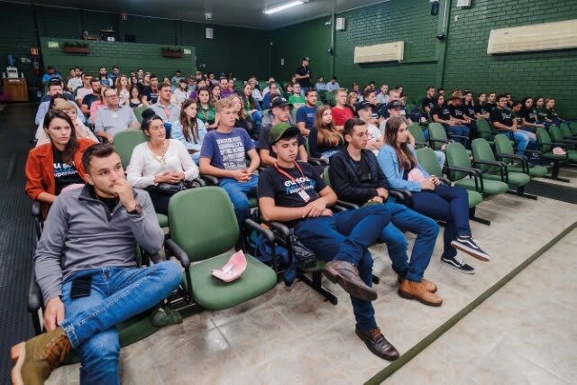 Centenas de jovens marcaram presença no evento. Foto Choks/Divulgação.Marcos Marin enfatizou o pensamento crítico, a comunicação, a colaboração e a criatividade no cooperativismo